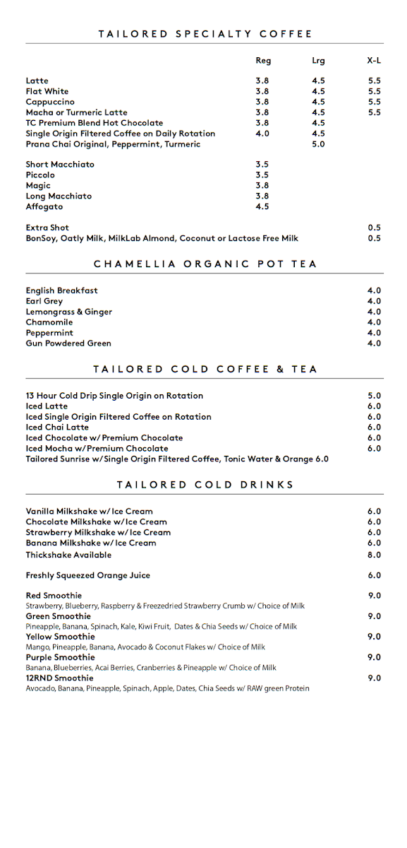 Awaken your senses with our Tailored Sunrise, featuring single origin filtered coffee, refreshing tonic water, and a splash of orange for a bright and zesty drink.